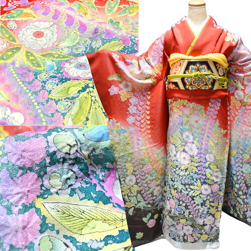 ◆ギフト用途 誕生日プレゼント(バースデー)/クリスマス/ホワイトデー/結納/成人祝い/就職祝い(昇進祝い)自分のサイズピッタリに誂える体験も、 楽しみの一つです 鮮やかな色合の辻が花の意匠が たっぷりとあしらわれました、素敵な振袖。