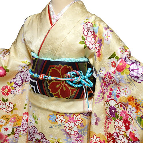購入 振袖 正絹 25点 セット / 黄 成人式 ふりそで 振袖 袋帯 長襦袢 重ね衿 帯締 帯揚 草履 バッグ ショール 着付け小物 着物スリップ 足袋 { 振袖 振り袖 成人式