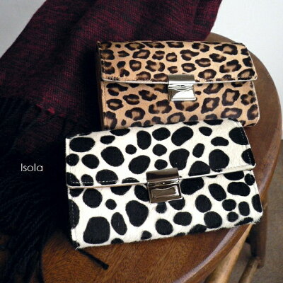 ノベルティ&レザークリームプレゼント クーポン対象外 ISOLA アイソラ 長財布 ギャルソン 三段錠/小 ハラコ ファー 毛皮 3932 ダルメシアン/レオパード