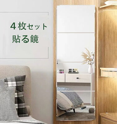 【4枚セット 】 全身鏡 貼る鏡 ミルオ君ウォールミラー 全身鏡 4枚セット 30*30 薄型 壁掛け ミラー おしゃれ シール ノンフレーム 自由組合鏡 貼付けタイプ シンプル 四角形ミラー 枠無し鏡 オシャレ クローゼット 寝室 ヨガ