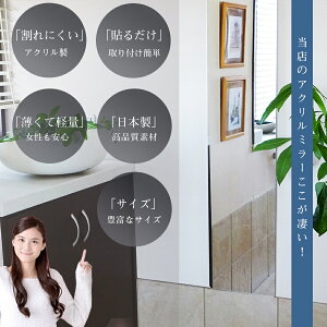 ブランド/ ANSHIN MIRROR 軽量で薄型の取り付けも簡単な日本製のアクリルミラー リビングや玄関などどこでも使えるミラーシリーズ ディテール/ MIRROR 薄くて割れにくい、 簡単貼るだけのミラー 素材はアクリル樹脂、アルミ、ポリエチレンで鏡面は硬くて傷がつきにくい仕様です。