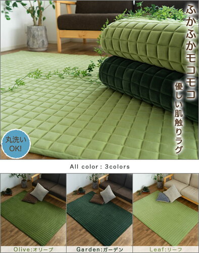 【15H限定!5%OFFクーポン対象】 ラグ 洗える 190×190 約 2 畳 キルト グリーン カーキ 緑 黄緑 ラグマット カフェ 北欧 ウレタン カーペット 絨毯 じゅうたん アクセントマット おしゃれ かわいい 正方形 送料無料 厚手
