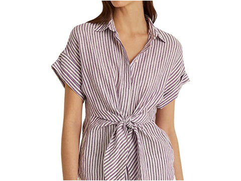 ■備考(取寄) ローレン ラルフローレン ストライプド タイ フロント リネン シャツ LAUREN Ralph Lauren Striped Tie Front Linen Shirt Purple Verbena/Whiteレディース シャツ インナー トップス ファッション ブランド カジュアル 大きいサイズ ビックサイズ zp-9799801