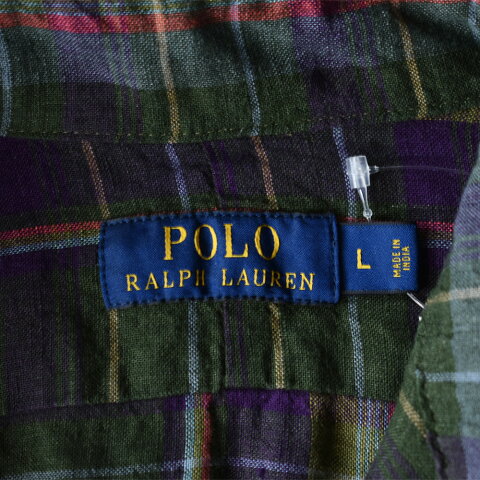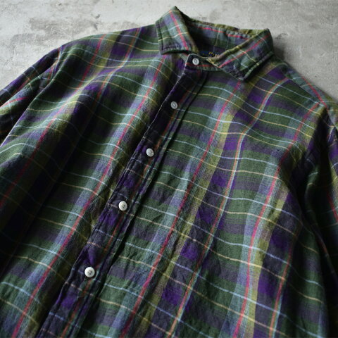 RALPH LAUREN/ラルフローレン チェック柄 リネンシャツ ラボラトリー ベルベルジン アール berberjin 60 70 80 90年代 ヴィンテージ ビンテージ アメリカ古着 ラルフローレンの長袖シャツ。