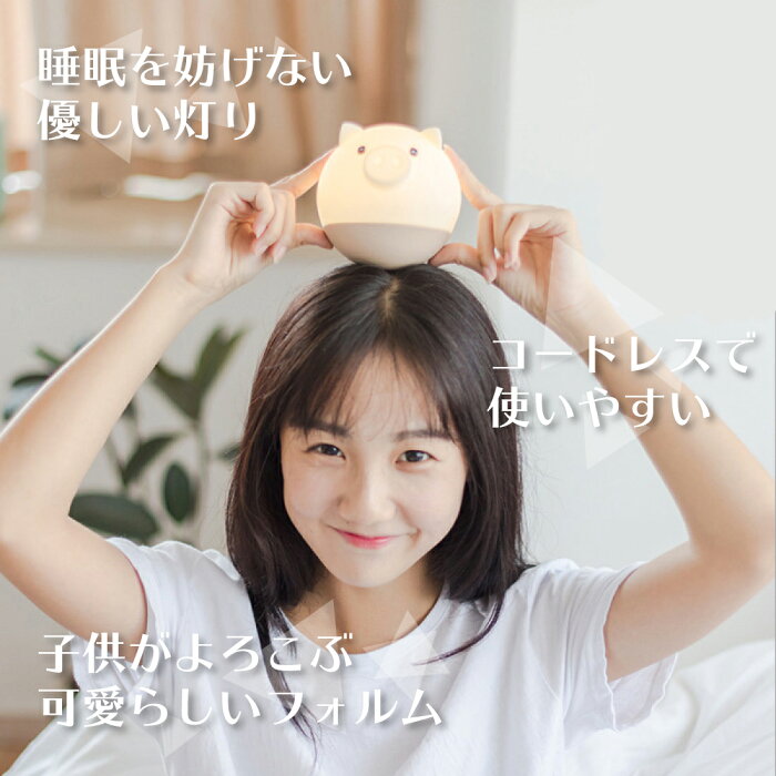 【商品詳細】 セット内容 ・ LEDライト × 1 ・ 充電用ケーブル × 1 商品紹介 こぶたデザインが愛らしく、LEDの優しい灯りが生活をサポートします。