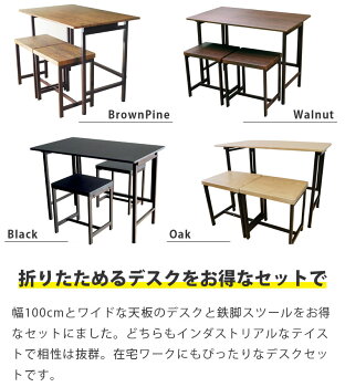 幅100cmとワイドな天板のデスクと鉄脚スツールをお得なセットにました。
