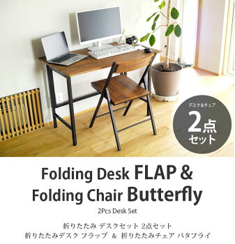 折りたたみ デスクセット 2点セット折りたたみデスク フラップ & 折りたたみチェア バタフライ Folding Desk FLAP & Folding Chair Butterfly 2Pcs Desk Set 折りたためる便利でお得なデスクセット 幅100cmとワイドな天板のデスクとスリムなデザインのチェアをお得なセットにました。